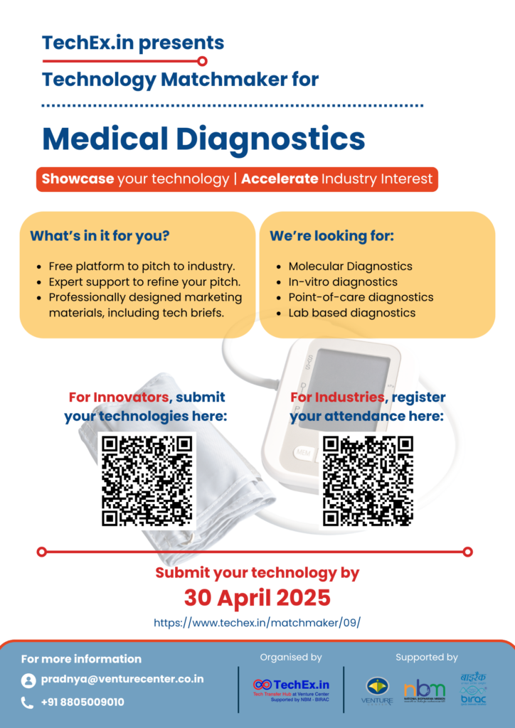 The medical diagnostics matchmaker aims to improve the diagnostics of human diseases. This is done by catalyzing collaborative and synergistic efforts in the larger innovation ecosystem. We also promote developing and adopting advanced diagnostic devices for human applications.